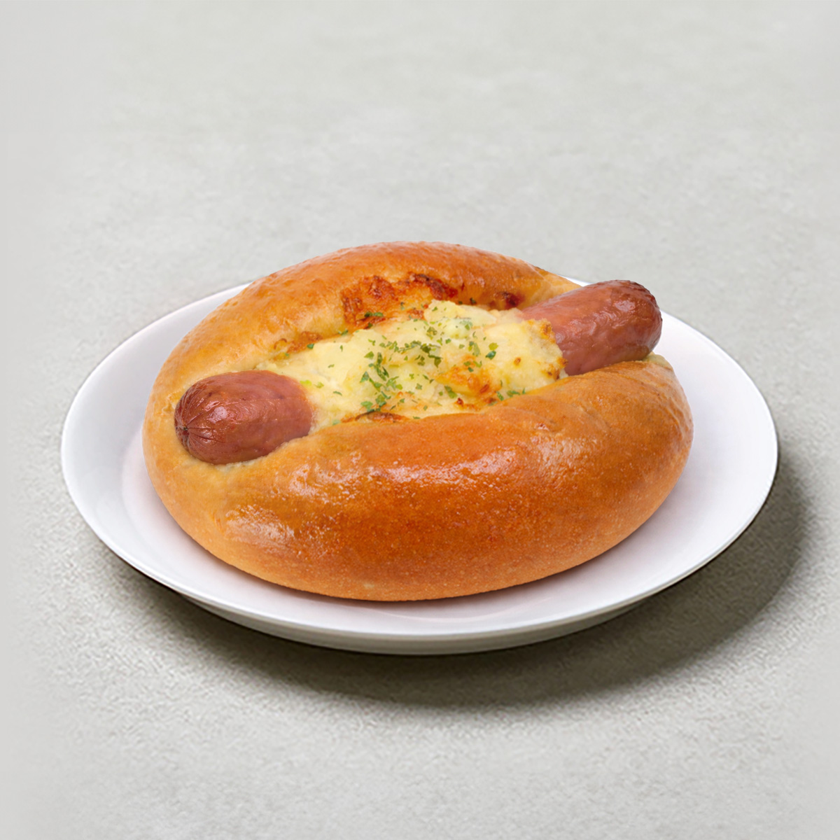 Fluffy soft bread filled with creamy tuna mayo topped by parmesan cheese.