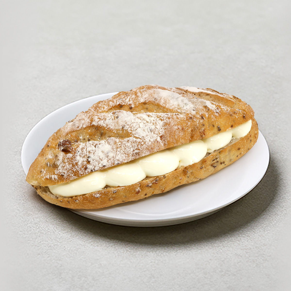 Soft milk loaf with tart cranberries, crunchy walnuts, and chia seeds, filled with rich cream cheese for a perfectly balanced sweet, tangy, and creamy indulgence.